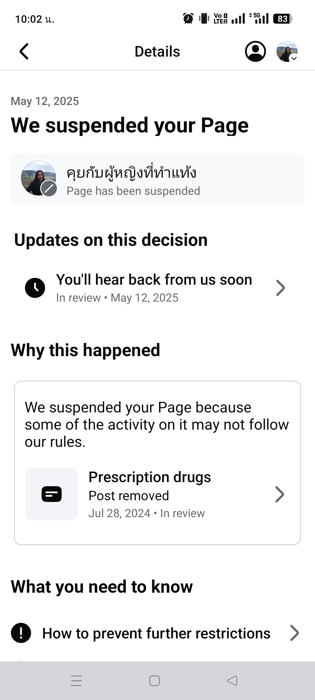 Similarly, the Tamtang Foundation, an abortion advocacy organization based in Thailand, had its Facebook account suddenly disabled earlier this year. Tamtang told EFF it had received a warning on only one flagged post that it had posted 10 months prior to its account being taken down. It received none of the other progressive strike restrictions Meta claims to apply Facebook accounts.