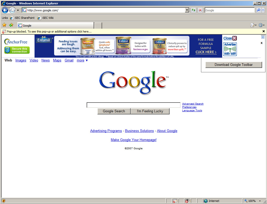 4 This particular advertising appears to have been added by AnchorFree, one of several firms experimenting with this means of ad placement; see http://anchorfree.com/advertisers-agencies/how-it-works/. See also http://vancouver.cs.washington.edu/ for a research project investigating the prevalence of this phenomenon.